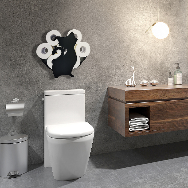 Deze toiletrolhouder heeft een speels ontwerp met een schattige kattenafbeelding, waardoor het een leuke en unieke uitstraling heeft. Het past perfect bij verschillende badkamerstijlen en voegt een vleugje speelsheid toe aan de ruimte.