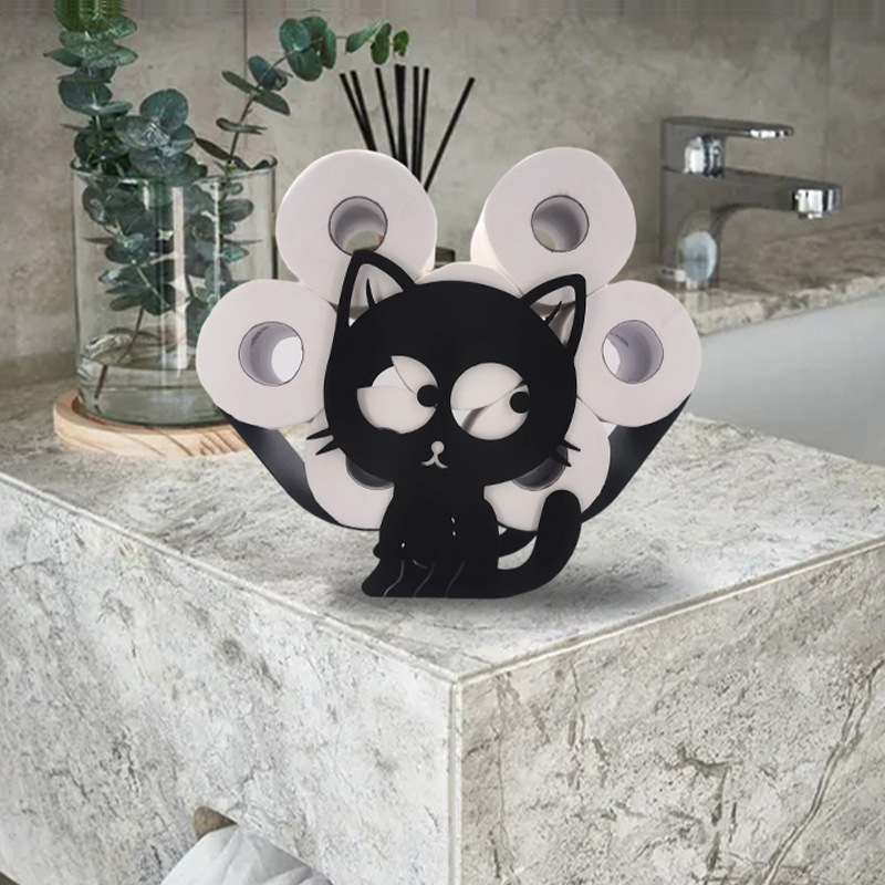Toiletrolhouder Kat – staande toiletrolhouder – liggende toiletrolhouder – woonaccessoires voor in badkamer of toilet – 7 rollen